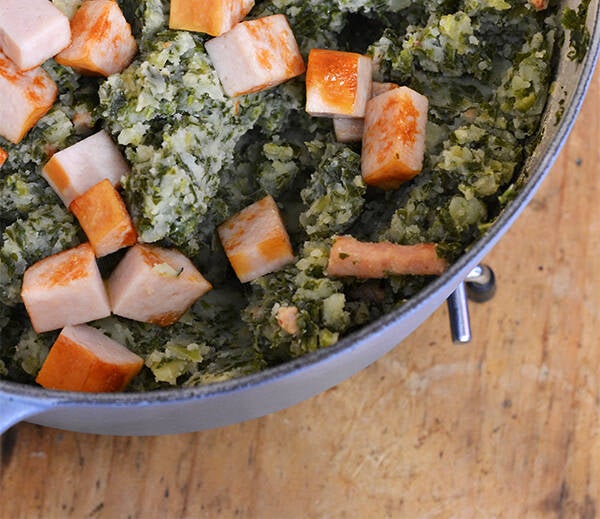 Een heerlijke, verwarmende klassieker met een verrassende twist. Romige boerenkoolstamppot, rijk van smaak en perfect op smaak gebracht, gecombineerd met malse stukjes gerookte kip die zorgen voor een subtiel rokerig accent. Een vertrouwd Hollands gerecht, maar nét even anders – puur, voedzaam en onweerstaanbaar lekker.